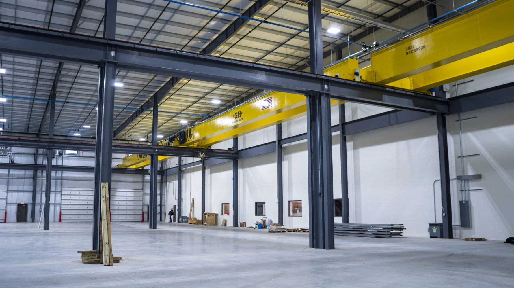 With 120,000 square feet of industrial space and a two-story 20,000 square foot office, INOX Market Services USA in Muncie, IN has room to grow. The manufacturing space houses four (one in each bay) 32-ton independent cranes with the capacity for an additional crane in each bay for a total of eight overhead cranes. This new facility will provide an additional three hundred new jobs in Delaware County.